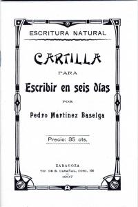 Nos dicen las estadísticas que, en España, durante las primeras décadas del siglo XX quedaba mucho camino por recorrer para conseguir la completa alfabetización de la población. En Aragón, apenas el cincuenta por ciento sabía leer y escribir. Por eso cuando en 1907 Pedro Martínez Baselga (Zaragoza, 18 de enero de 1862-Zaragoza, 22 enero de 1925) dio a la imprenta su Cartilla para escribir en seis días, la obra fue acogida calurosamente por el público y resultó premiada en el concurso literario de la duquesa de Villahermosa, fue declarada de utilidad para la enseñanza del soldado y laureada con varios premios de ayuntamientos y diputaciones. Tal fue el éxito que a los pocos días de salir a la venta, se agotó la edición y en menos de un mes se imprimieron cinco ediciones más. Muchas personas aprendieron a escribir con esta cartilla y consiguieron «vaciar en el papel su pensamiento» y «comunicar a distancia con sus semejantes». Otros que quizá conocieran los rudimentos de la escritura, mejoraron su deficiente caligrafía porque, a juicio de Martínez Baselga, «la escritura de la mayor parte de los españoles parece un escarbadizo de gallinas».