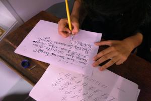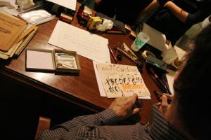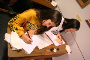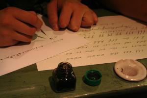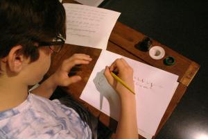 Taller de caligrafía en el Museo Pedagógico de Aragón