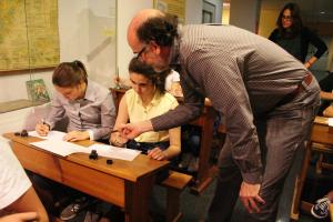 Durante la mañana del pasado miércoles, y dentro de los actos programados para la celebración del Día Internacional de los Museos, el Museo Pedagógico de Aragón ha organizado dos sesiones de un taller de caligrafía denominado «Caligrafía Inglesa (pluma de pico de pato)», impartido por el prestigioso maestro calígrafo Ricardo Vicente.Este año los alumnos invitados a participar en este taller han sido alumnos de 3º de ESO del colegio Salesianos de Huesca.